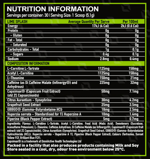 Bitter Orange Extract: Shown to naturally suppress appetite and can help to boost fat oxidation for increased energy. Expect enhanced stamina and not only at the gym.